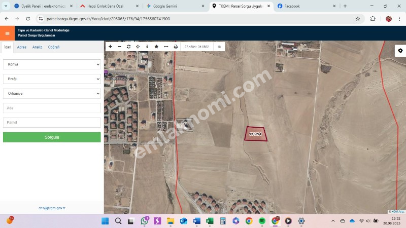 EMLAKNOMİ'den Konya Ereğli Orhaniye'de İmara yakın konumda Yatırımlık Tarla (72086)