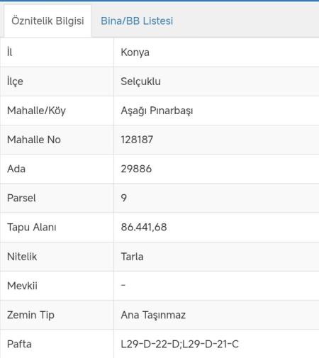 Parselli: Evet, 9 parsel numarası ile kayıtlıdır.