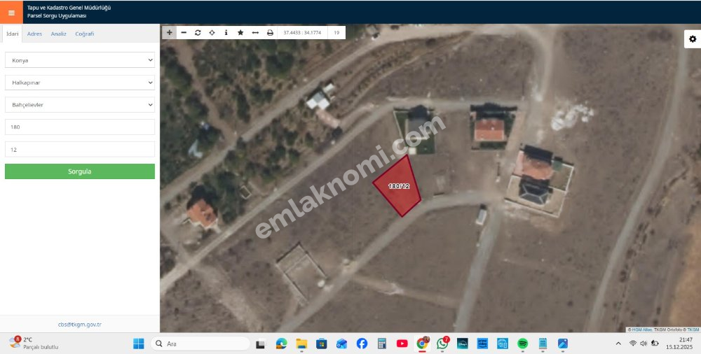 EMLAKNOMİ'den HALKAPINAR BAHÇELİEVLER'DE SATILIK KONUT İMARLI ARSA (88840)