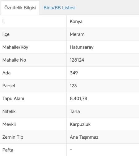 | İmar Durumu | Tarla |