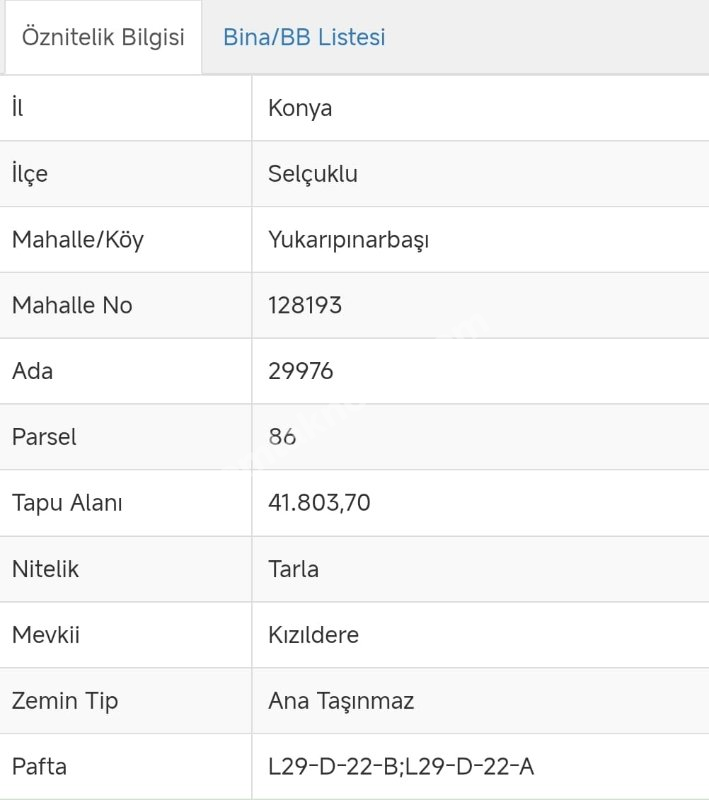 | İmar Durumu | Tarla |