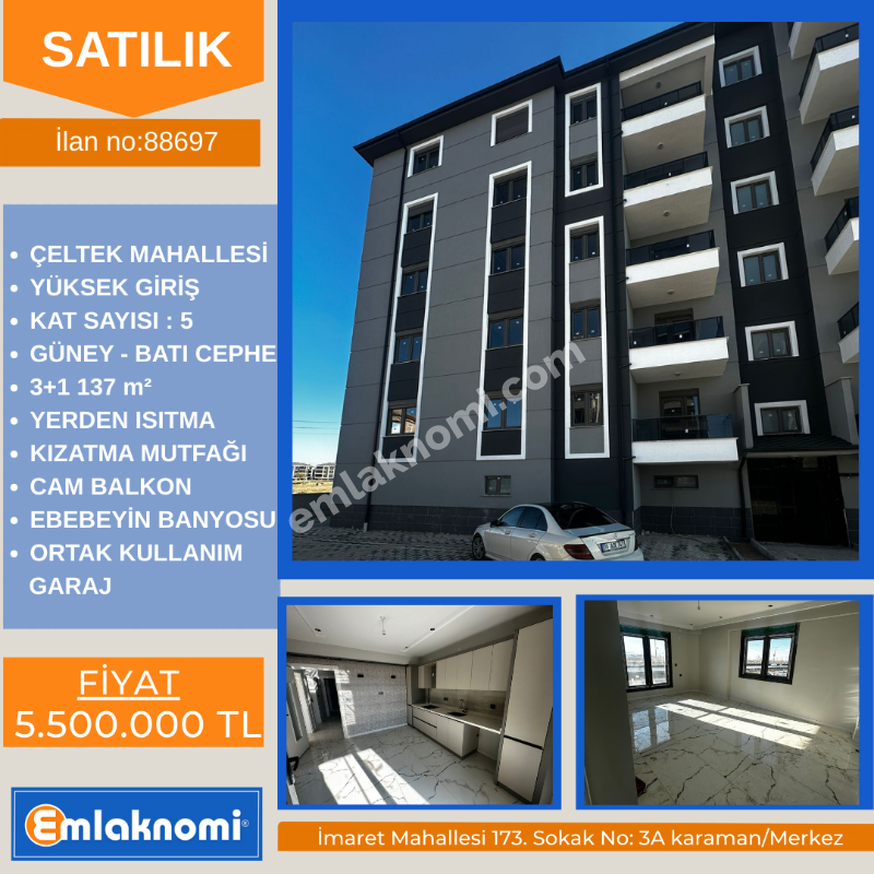 Çeltek Mahallesi Karaman’da gelişen bir lokasyon. Yeni binalar ve altyapı avantajı var.